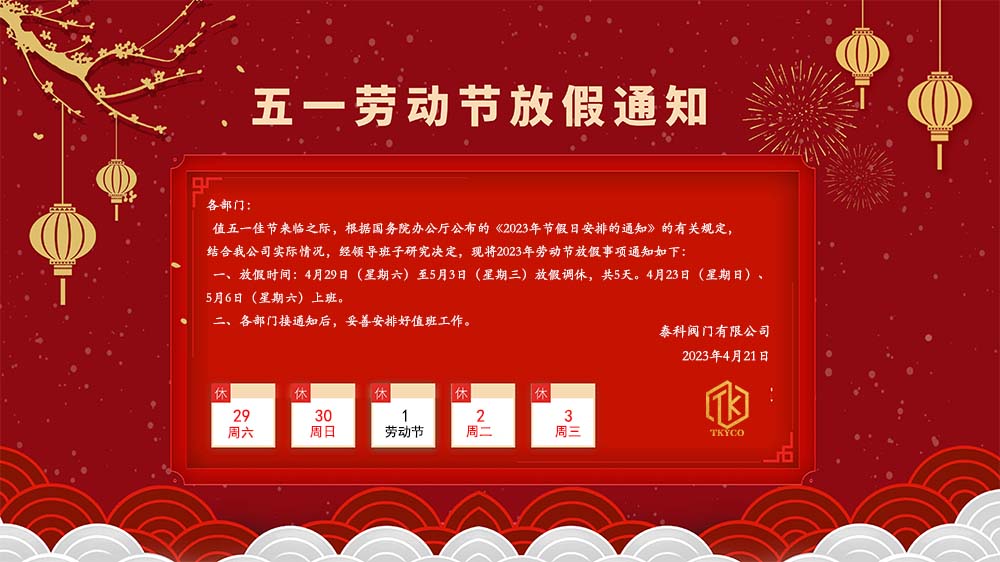 泰科閥門有限公司五一勞動節放假通知!